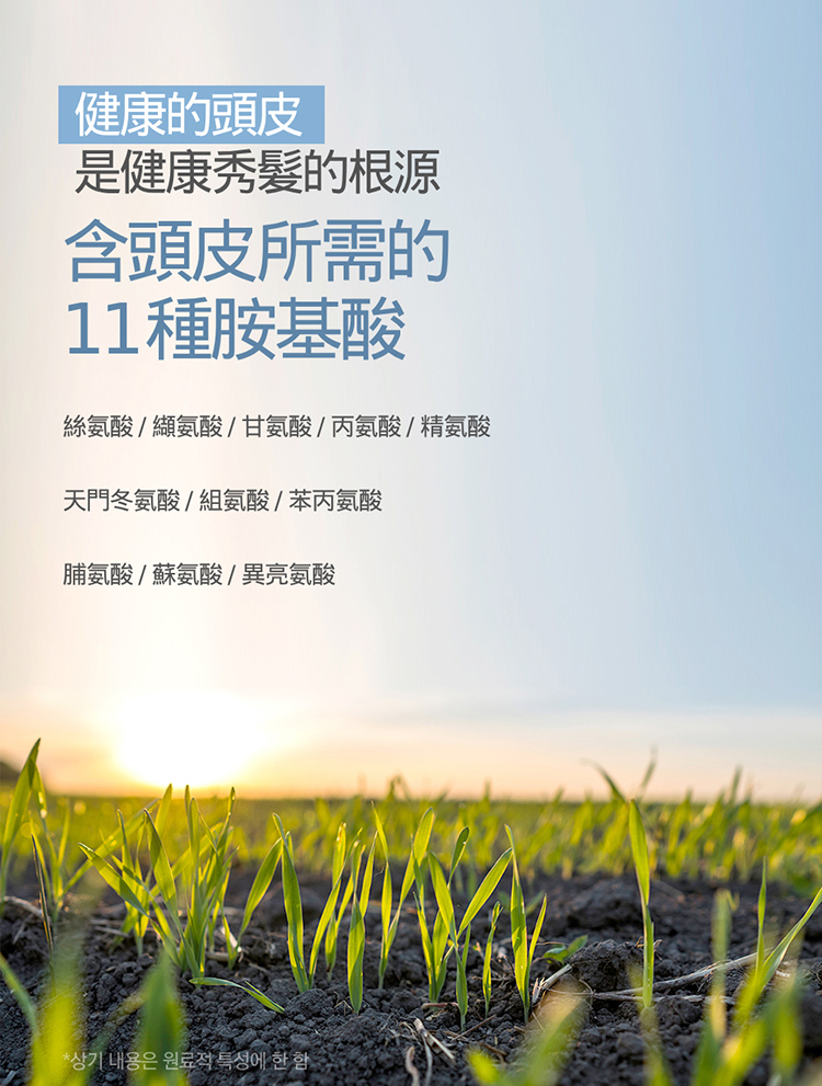 頭皮護理:添加11種胺基酸,深層清潔同時滋養頭皮。