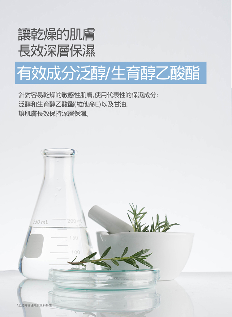 含甘油與維生素B5,有效保濕滋養成分