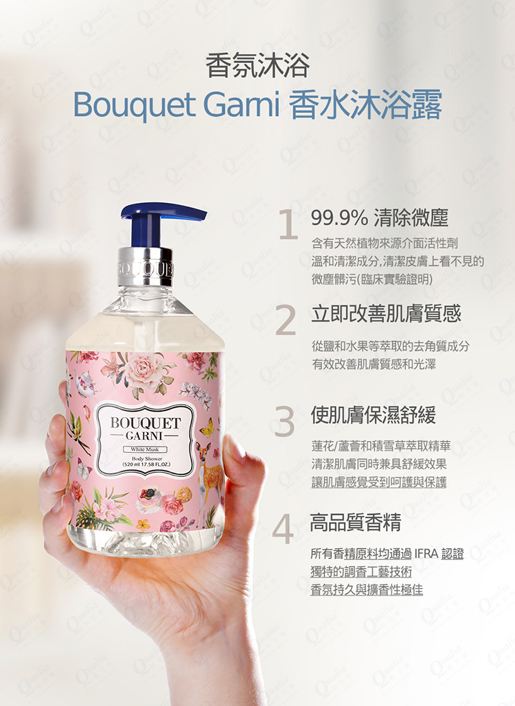 韓國頂尖香氛品牌Bouquet Garni 璞珈妮,靈感源自法國南部普羅旺斯區的迷人風光,深受眾多消費者的喜愛。璞珈妮的寶寶香香水沐浴露散發出柔和甜美的氣息,具有柔和的寶寶香氣,讓人彷彿置身於溫馨的嬰兒床,享受如嬰兒般的清新與舒適。這款沐浴露含多種高效保濕成分,能深層滋潤肌膚,使肌膚光滑細緻,觸感柔嫩。
