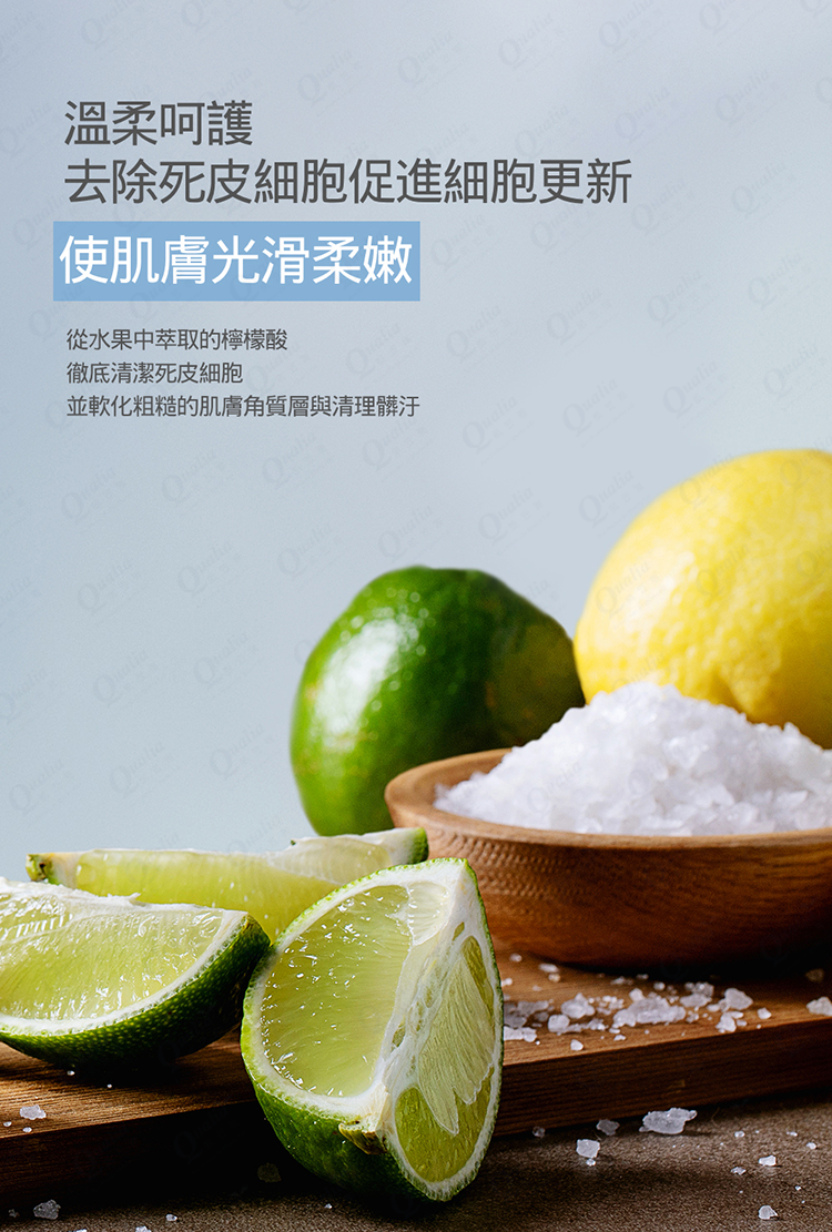 溫和去角質:天然介面活性劑溫和軟化去除角質,使肌膚潤澤光滑。