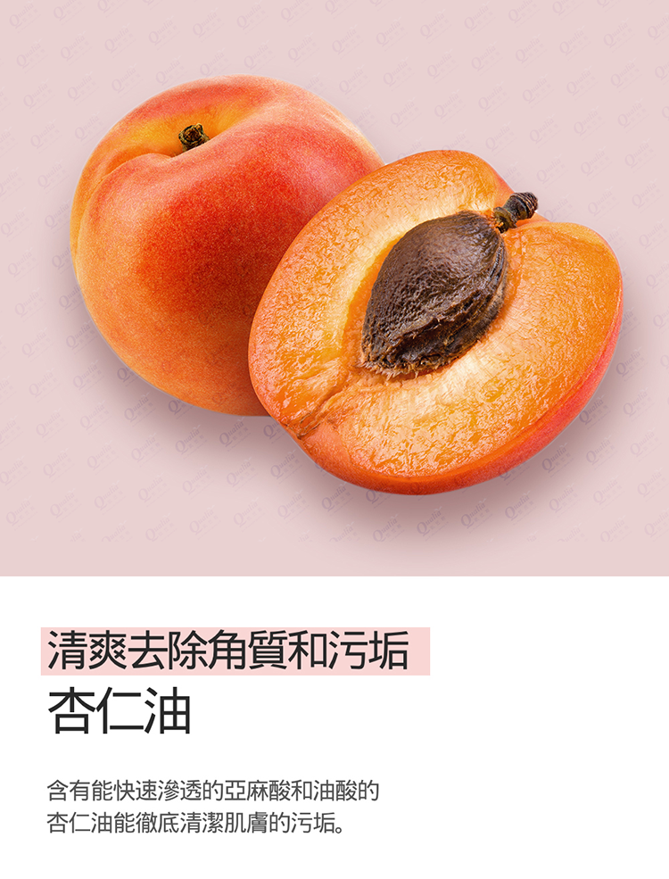 3. 天然成分:荷荷巴油(Jojoba Seed Oil)、杏仁油(Apricot Kernel Oil)、酪梨油(Avocado Oil)、橄欖果油 (OliveFruit Oil)、椰子油(Coconut Oil)等成分,提供肌膚滋潤與保護。