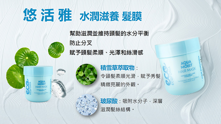 玻尿酸:吸附水分子,深層滋潤髮絲結構。